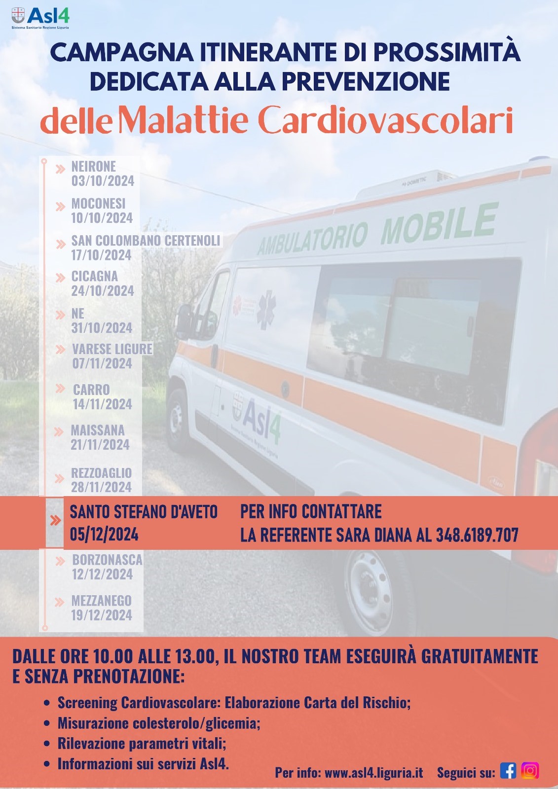 dalle ore 10.00 alle ore 13.00il team Asl4 eseguirà gratuitamente e senza prenotazione: