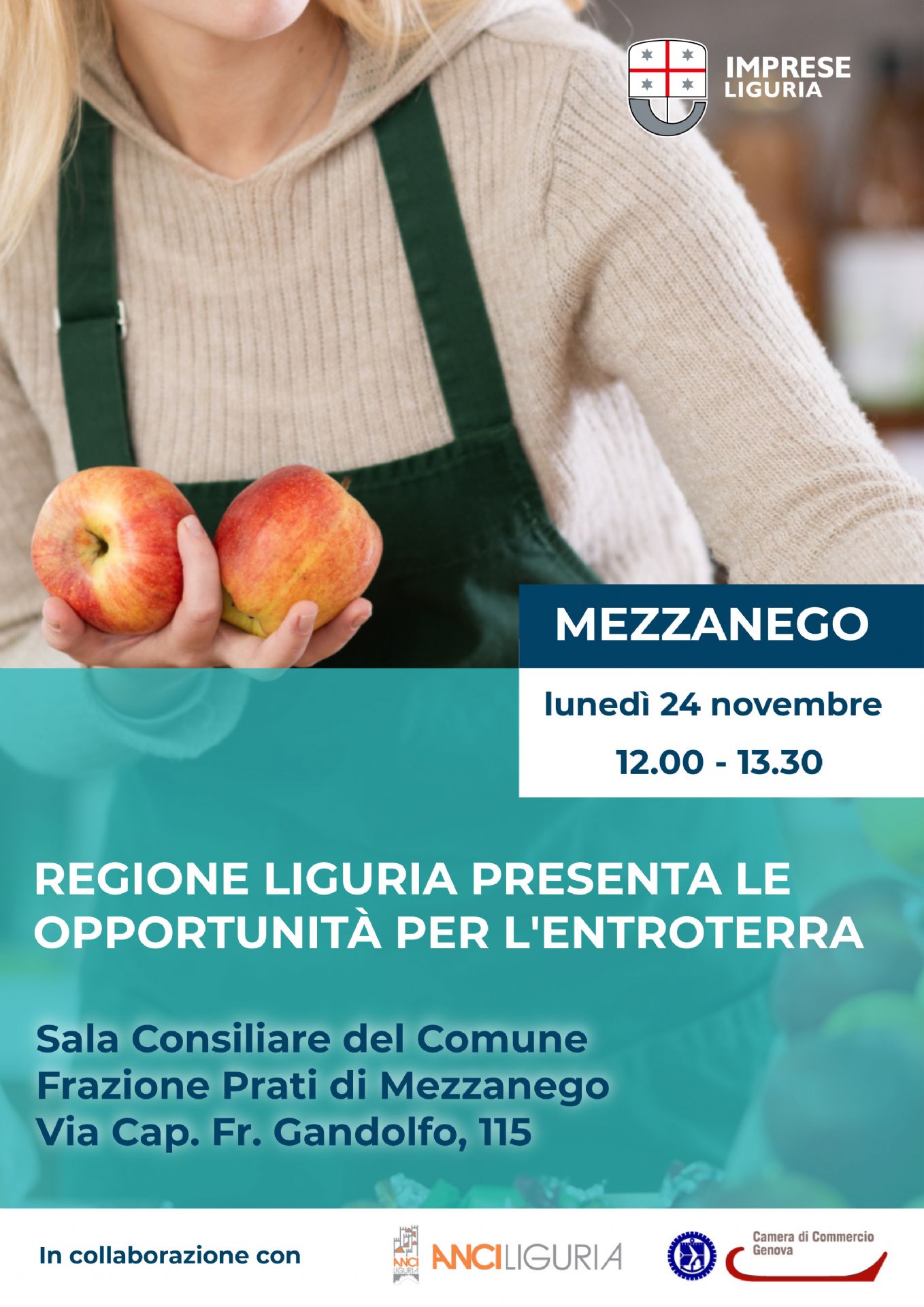 L’incontro si inserisce nell’ambito del programma “Imprese Liguria”, in collaborazione con ANCI Liguria e la Camera di Commercio di Genova.